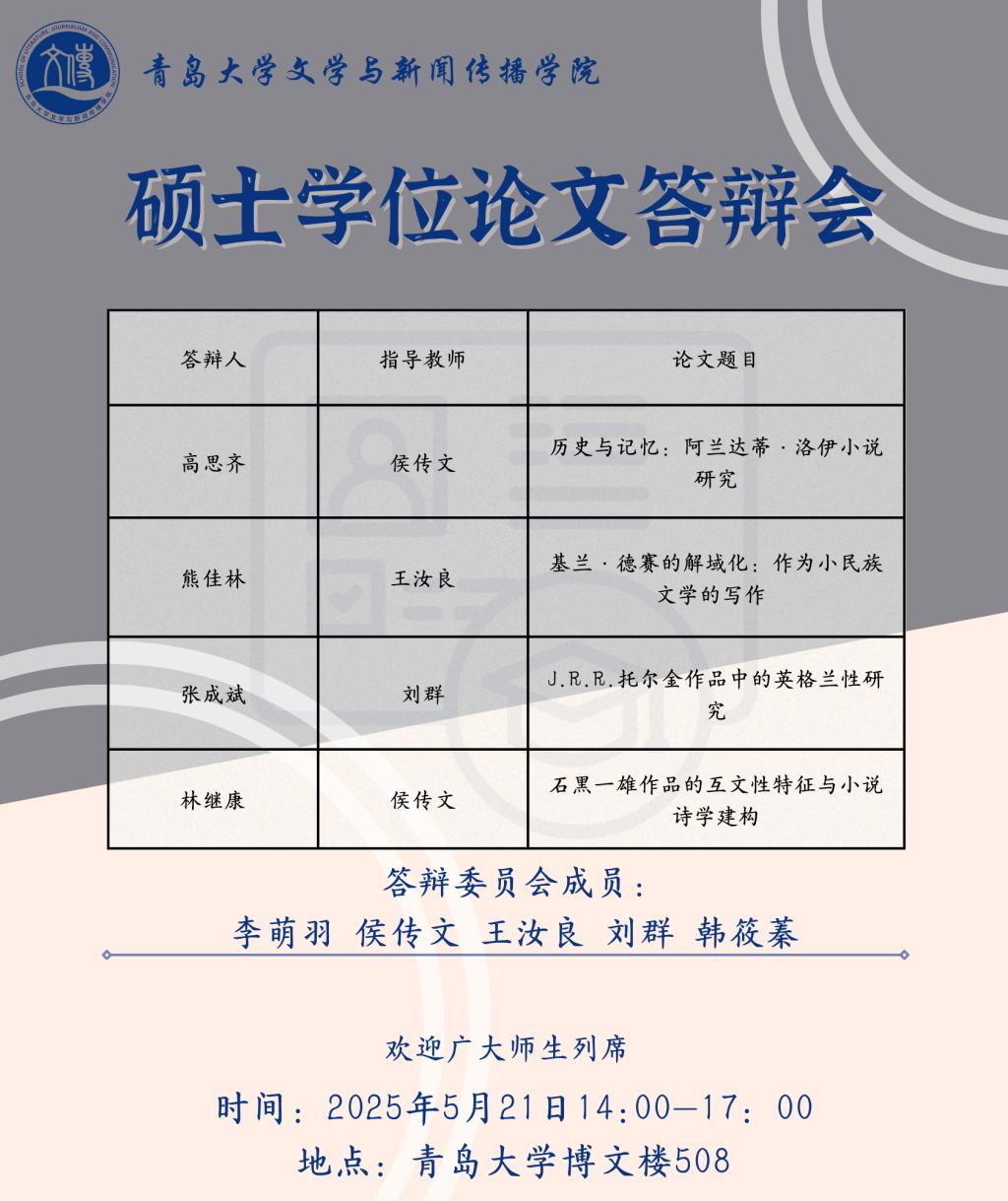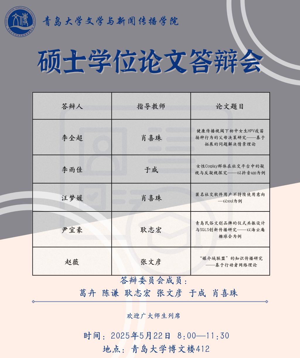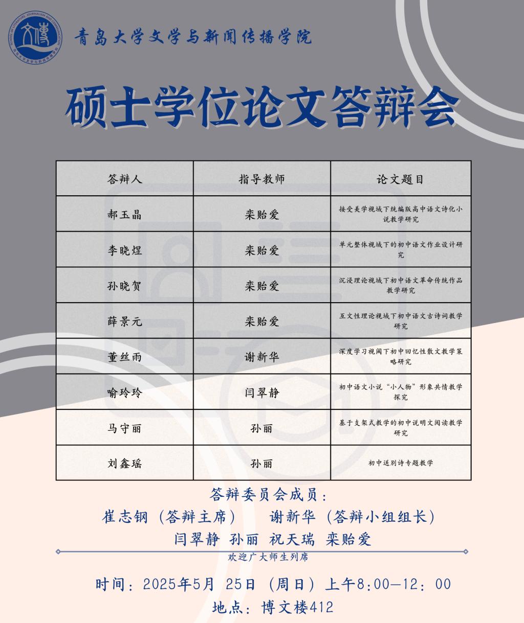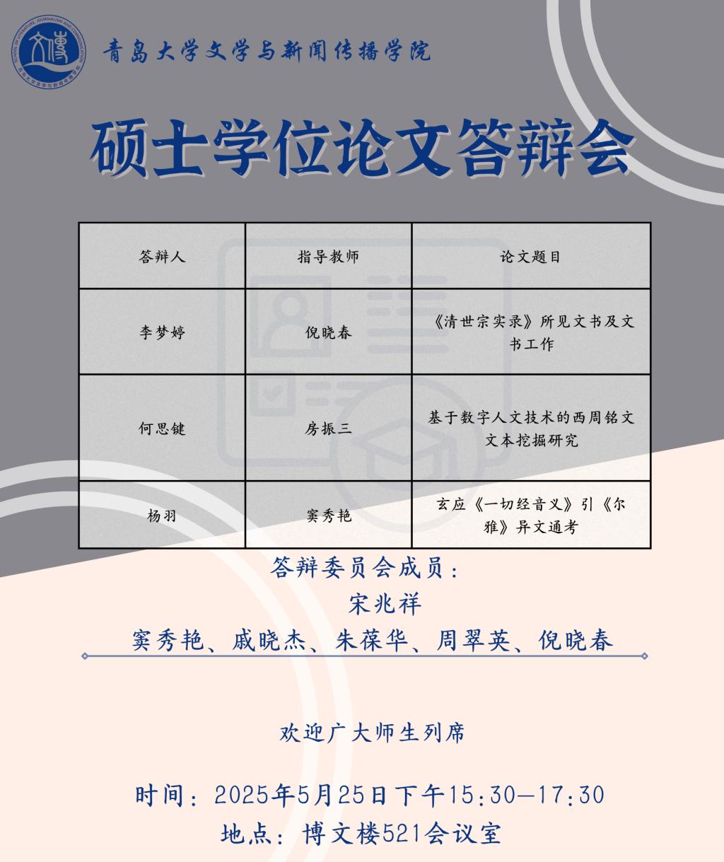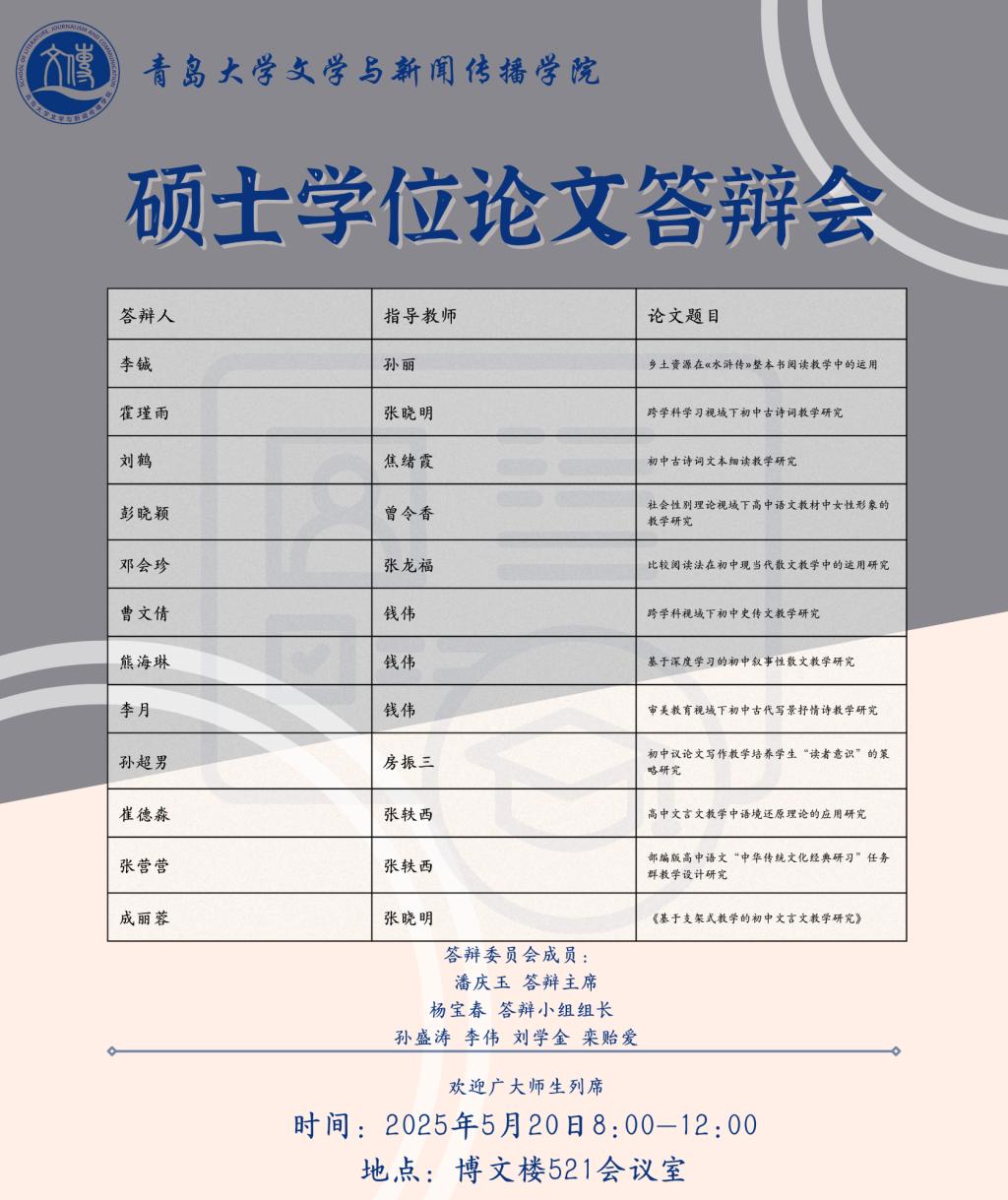草莓视频-草莓视频app下载 将于5月19日至5月25日进行文艺学、汉语言文字学、中国古典文献学、中国古代文学、中国现当代文学、比较文学与世界文学、新闻与传播、学科语文(全日制)、学科语文(非全日制)、广播电视专业的硕士学位论文答辩,欢迎广大师生列席旁听。具体安排如下: